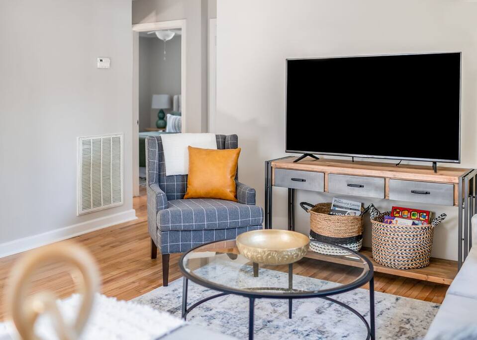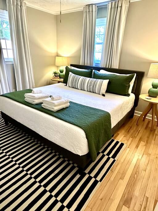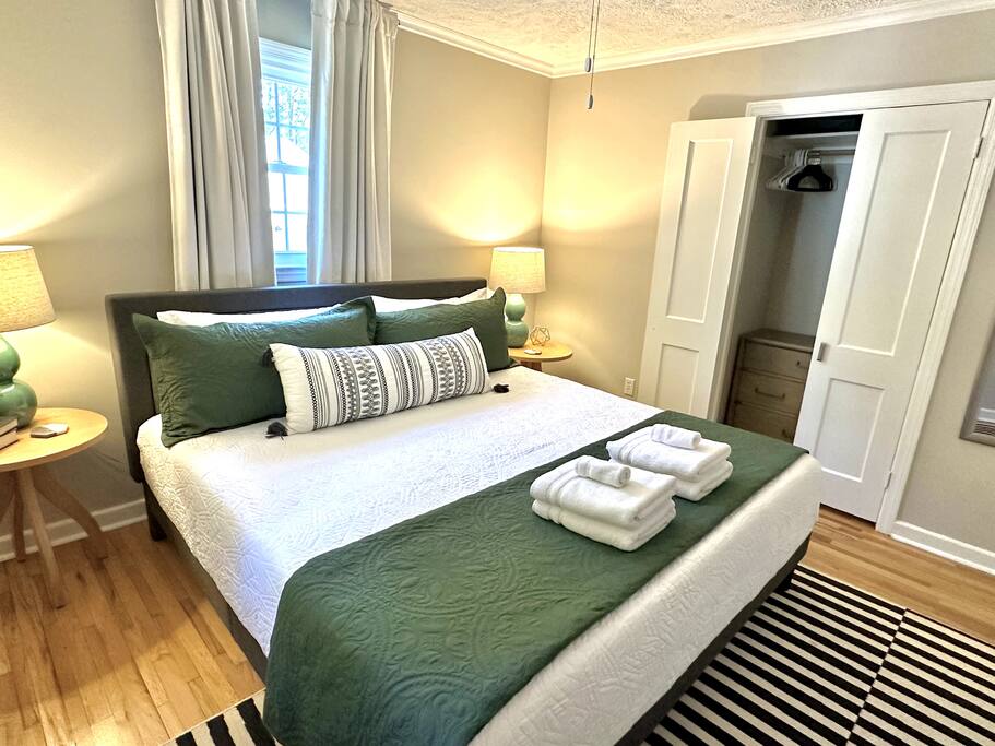Located on a quiet street, walking distance from downtown Southern Pines, this contemporary living space has everything to make you feel at home. The living area features q comfy couch for everyone to be together. Pick from your favorite TV shows and movies on Youtube TV, Netflix, Hulu, Disney+ & ESPN+.